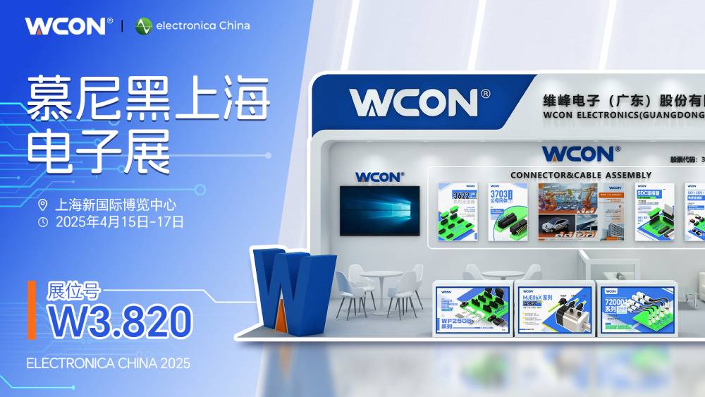 2025年慕尼黑电子展将于 2025年4月15日至17日在上海新国际博览中心举行。本次活动期间,WCON Electronics(“WCON”)将位于 W3.820展位,我们热忱邀请行业合作伙伴莅临参观。